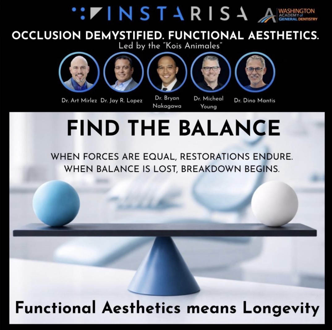 Speakers: Dr. Art Minelez, Dr. Jay Lopez, Dr. Dino Mantis, Dr. Micheal Young, and Dr. Bryan Nakagawa | Credit Hours: 16 | Subject Codes: Aesthetics, Occlusion and Removable